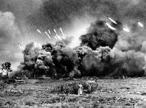 25 СЕНТЯБРЯ 1941 г. В связи с предполагаемым наступлением противника, командование ООР, упреждая противника, решило ввести в бой «Катюши». Ночью дивизион совершил марш и к утру занял боевую позицию в лощине близ Дальника. В 4 часа утра 25 сентября контр-адмирал Г. В. Жуков отдал приказ на открытие огня. Взвились клубы дыма, раздались рев и скрежет, и небо прочертили десятки огнехвостых ракет. А затем ракеты стали с ослепительным блеском и раскатистым грохотом рваться там, где только что поднялась в атаку неприятельская пе-хота. Утренняя атака румын на этом полукилометровом участке была сорвана сразу же, половина личного состава была уничтожена, остальные, бросив оружие, в панике бежали с поля боя. На поле боя осталось множество убитых, горели танки. И не удивительно, так как одновременный разрыв 288 реактивных снарядов можно приравнять к залпу пяти артполков. Утром 26 сентября с другой позиции, и снова в районе Дальника, дивизион произвел по залпу по двум целям. Пыль и дым при пуске ракет сильно демаскировали боевые машины, поэтому они быстро передвинулись на запасную позицию. В это время вражеская авиация безуспешно бомбила прежнюю позицию. Во второй половине этого же дня дивизион сосредоточился в восточном секторе и своим огнем помог 3-му морскому полку вернуть захваченную утром Новую Дофиновку. Вечером 27 сентября дивизион совершил марш под Татарку (ныне Прилиманское), там румыны предприняли очередное наступление. Утром атакующих румын накрыли двумя залпами и переместились на окраину села. 29 сентября дивизион был переброшен под Новую Дофиновку. Здесь своим залповым огнем он помог морским пехотинцам удержать позиции. В это время дивизион реактивных минометов стал «палочкой-выручалочкой». Артиллерия оборонительного района из-за ограниченного боекомплекта временами сидела на «голодном пайке», в то время как реактивные снаряды регулярно доставлялись не только морскими транспортами, но и самолетами. Меняя позиции и совершая марши с одного сектора обороны на другой, накручивая в день до 150 км и более, дивизион ежедневно давал до пяти и более залпов. Транспортный его взвод едва успевал подвозить боеприпасы. Залпом дивизиона началось успешное наступление, предпринятое частями южного сектора 2 октября в направлении Ленинталя и Петерсталя. В этом бою батарея подбила 5 танков и уничтожила до батальона пехоты румын. Другая батарея в это время принимала участие в отражении наступления румын на Сухой Лиман. 8 и 9 октября дивизион своим огнем помог 1-му морскому полку отбить атаки румын. В штыковой атаке участвовал личный состав 2-й батареи. 11 октября дивизион участвовал в ликвидации прорыва позиций 95-й дивизии на подступах к ст. Дачной, поддерживая своими залпами, вместе с артиллерией дивизии, контратаку 90-го полка.