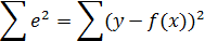 Теоретические сведения Пусть дана система уравнений f(x)=y, где f - некоторые функции, y - некоторые известные значения, x - набор неизвестных (искомых) переменных. Для произвольных значений x значения y отличаются от f(x). Суть метода наименьших квадратов заключается в том, чтобы найти такие значения x, при которых минимизируется сумма квадратов отклонений (ошибок) e=y-f(x):
