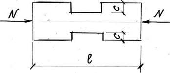 Рис. 3. Решение. Проверка несущей способности центрально-сжатого стержня производится по формуле N =φ тп тв Rс Aрасч Для рассматриваемого варианта тп = 1,0; тв = 1,0; Rс = 13 мПа. Сечение имеет симметричное ослабление, выходящее на кромку сечения. Для такого стержня Aрасч = Ант =(15•22,5) - 2•2•15 = 49,2 см2 Гибкость стержня λх = μоℓ/0,289 b = 1,0•400/0,289•22,5 = 69,2 λу = μоℓ/0,289 h = 1,0•400/0,289•15 = 92.3