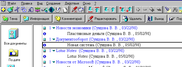 Представления и папки обычно имеют названия,отражающие критерии отбора или порядок формирования списка отображаемых в них документов,например, "Новости экономики по дате".