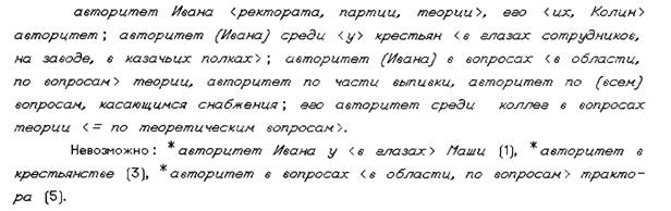 Модель управления для лексемы «авторитет» в ее первом значении: