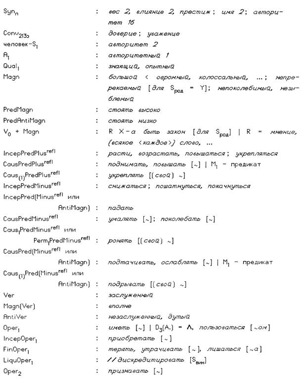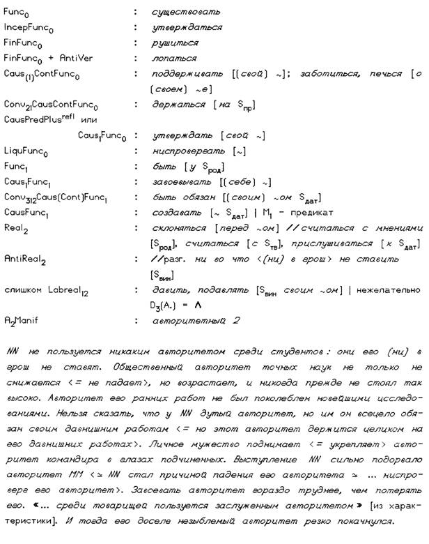 Теперь на примере лексемы «авторитет» посмотрим, как формализованы ее лексические функции: