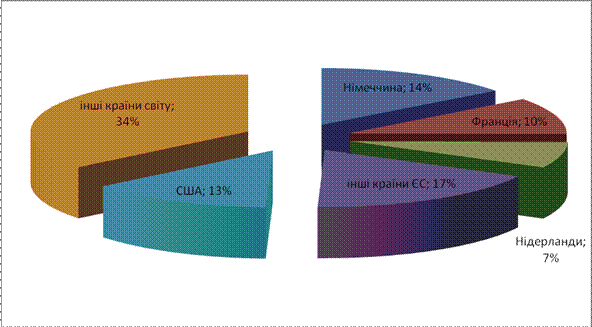 У 2008р. найбільш великими для Великобританії партнерами залишалися країни Європейського союзу (54,7% в товарообігу) і США (11,14%). Рисунок 2