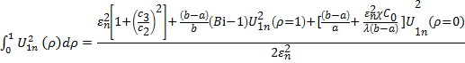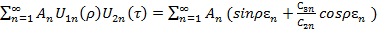 Θ(ρ,τ) = Постоянные Anв уравнении (21) находятся из начального условия, тогда из (21,22) [ρ + a /(b – a)] = что есть разложение в ряд Фурье с заданными параметрамиɛn,определяемыми характеристическим уравнением (20). Для нахождения Аnметодом Фурье следует умножить уравнение (23) на U1m(ρ) и проинтегрировать от ρ=0до ρ =1,нопредварительно надопоказать, что функции U1n(ρ) и U1m(ρ), (n,m = 1,2,3, …) взаимно ортогональны,т. е.