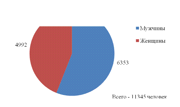 Исходя из выше - изображённой диаграммы, на предприятии небольшое преимущество мужчин. Это положительный момент, так как мужчины позже выходят на пенсию, редко уходят в отпуск по уходу за ребёнком, всё это сокращает риск, что предприятие понесёт убытки.