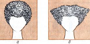 Быстротекущее время вносит в работу парикмахера много перемен, касающихся технологии, художественного оформления и т. д., что заставляет его постоянно следить за всеми модными изменениями в окружающей его жизни. Основные принципы композиции моделирования, технологии и т. д., сохраняя свой общий характер, в свете модных изменений одни требования выдвигают на первый план общественной практики, другие оставляют в сфере использования во второстепенном качестве. Взгляд на актуальную моду как на явление очень динамичное заставляет нас предпринять попытку разобраться в современном процессе эволюционных изменений. Для этого вернемся к середине 70-х годов XX в. Первой моделью, воплотившей новые веяния, была стрижка "паж", характерная движением волос, чистой геометричностью, полным отсутствием каких бы то ни был декоративных деталей. Эта новая стрижка-прическа вызывала ощущение естественности, присущей всему строю действующей моды. Здесь нужно сделать некоторое уточнение. Речь идет об ощущении естественности, о "якобы естественности". Внешняя простота и естественность женщины этого времени - это кажущаяся простота, за которой проглядывают зрелый ум, четкое знание своих достоинств и недостатков, нежелание наивно украшать свою внешность кричащими декоративными элементами, так что естественность этого рода следует рассматривать очень условно (как термин). Это положение является ключевым в понимании моды 70-х-80-х годов, на самом деле очень сложной и многоплановой. Необходимость создания новых простых и естественных форм заставила модельеров одежды искать новые линии, новые принципы конструирования, использовать новые ткани. Парикмахеры осваивали новую, очень точную, прямо-таки филигранную технику стрижки, служащей одним из средств выражения (обозначения) модного образа. Однако эта мода ориентирована на взрослую женщину. Эталон моды - "женщина-интеллектуалка". В рамках широко распространившихся в обществе геометрических стрижек молодежи удалось проявить свое, более острое, отличное от взрослых, прочтение моды. Такую возможность открыла химическая завивка без укладки. Молодежь никогда не видела чтобы завитые волосы носили без укладки (такое имело мест(последний раз только в 40-х годах) - отсюда новизна, столь необходимая в моде. Возникли прически так называемого стиля "афро". Первыми появились две модели: шарообразная прическа "Анджела Дэвис" (рис. 90, а) и имеющая в силуэте анфас перевернутую трапецию прическа "Клеопатра" (удовлетворяется принцип геометричности с оттенком некоторой "интеллектуальности" - рис. 90, б). Кроме того, в быту девушка после мытья просто высушивает волосы полотенцем и позволяет им принять заданную стрижкой и завивкой форму, не применяя никаких технических ухищрений - накрутки, укладки и т. д. (опять же вариация, якобы, естественности).