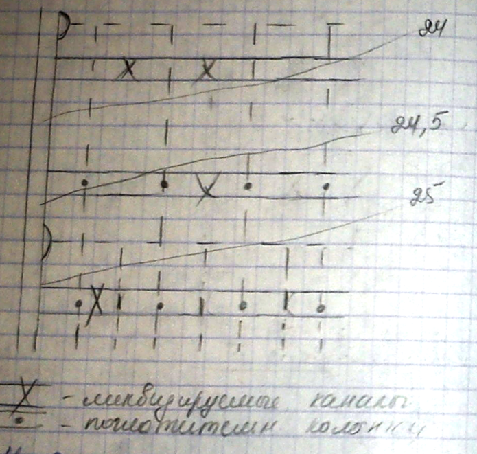 -поглотительные колонки.) Схема Переустройство открытой осушительной сети на дренаж. Продольная схема реконструкции.