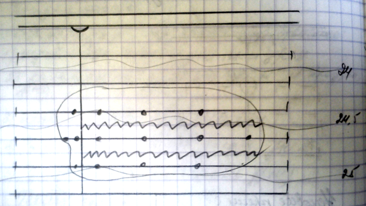 2 Первоначальное осушение-открытая сеть канала с расстоянием между ними 200 м. Мелкозалежные торфяники, подстилаемые пылеватым, мелким песком с Кф=1..3.Используеться в севообороте.Предлогается схема реконструкции открытой осушительной сети на системы выборочного дренажа