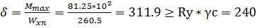 Запас прочности 5,74 % Проверка на жесткость нового сечения.