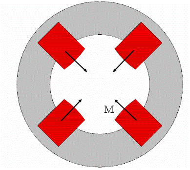 Описание модели Квадруполь состоит из сборки четырех постоянных магнитов, установленных в железный цилиндр, который используется для усиления и поддержания возникающего поля. Для обеспечения хорошего приближения магниты работают одновременно.