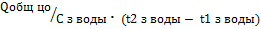 Qобщ =k∙F∙∆t, где Qобщ – кол-во теплоты, передаваемое от пресной воды к забортной воде (без учета потерь теплоты в окружающую среду) k – коэффициент теплопередачи, Вт/м2*К ∆t –температурный напор, равный средней разности температур конденсирующегося пара и охлаждающей воды Из уравнения теплового баланса: Qобщ = Gпрводы∙спр воды∙(t2 пр воды- t1 пр воды)≡ ≡Gзабводы∙сзаб воды∙t2 заб воды- t1 заб воды) Определяем расходы: - пресной воды Gпрводы= 38880572/4,174∙(58-52)=1552490(кг/ч)=431(кг/сек) - забортной воды Gз воды= 38880572/3,93∙(30-20)=989328(кг/ч)=275(кг/сек)