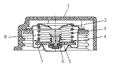 Сальник водяного насоса (рис.3): 1 — корпус наружный; 2 — манжета; 3 — пружина; 4 — внутренний каркас; 5 — наружный каркас; 6 — кольцо скольжения. Сальник водяного насоса состоит из латунного наружного корпуса, в который вставлена резиновая манжета. Внутри манжеты размещена пружина с внутренним и наружным каркасами. Пружина поджимает кольцо скольжения. Кольцо скольжения изготовлено из графито-свинцового твердо-прессованного антифрикционного материала.