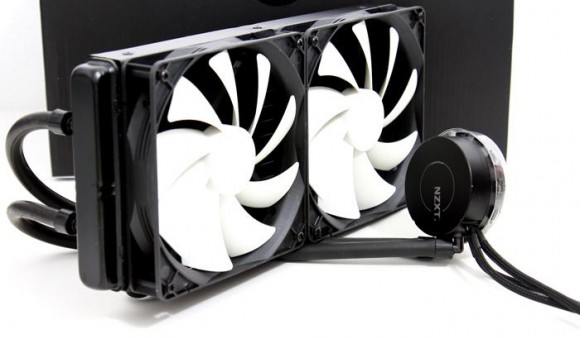 NZXT KRAKEN X40, погостившая в нашей тестовой лаборатории, нам определенно понравилась, но гораздо интереснее было познакомиться со старшей моделью — NZXT KRAKEN X60. «Шестидесятая» имеет более длинный алюминиевый радиатор — 314 мм, что практически в два раза больше, чем у X40. Удлинение конструкции позволило значительно увеличить эффективную площадь рассеивания тепла. В остальном X60 схожа с X40. Так, радиатор имеет 13 тепловых плоских трубок, поперек них припаяны алюминиевые пластины. Толщина рабочего тела составляет 16 мм. Водоблок, совмещенный с помпой мощностью 7.5 Вт, может находиться на значительном удалении от радиатора благодаря внушительной длине соединительных шлангов. Основание подошвы теплосъемника выполнено из меди и имеет практически идеальную обработку. В комплекте поставки прилагаются два 140-мм вентилятора с возможностью регулировки оборотов в диапазоне от 800 до 2000 об/мин. Есть возможность «подцепить» еще два дополнительных «карлсона». Сравнивая эффективность охлаждения KRAKEN X60 с другими универсальными СВО, можно с уверенностью сказать, что это объективно лучшее решение для разгона особо «горячих» процессоров на рынке готовых СВО.
