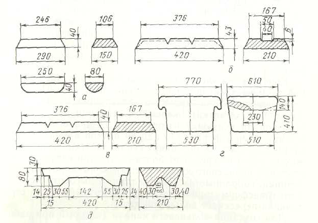Рисунок 11 – Формы чушек цинка (а-в), блоков цинка (г) и взаимозамыкаемых чушек (д)