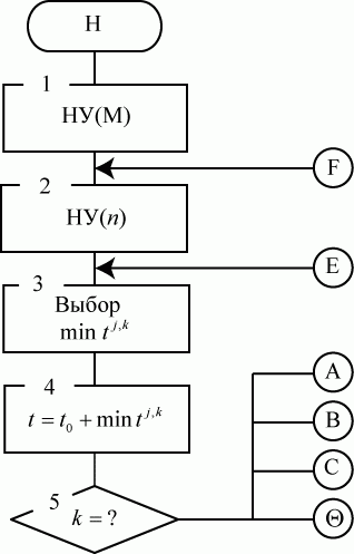 Блок-схема имитационной модели СМО состоит из общей части и модулей реакции. Общая часть имеет стандартный вид и была рассмотрена ранее. Структура общей части определяется способом продвижения модельного времени по событиям. Она показана на рис. 3.30. Блок 1 - установка начальных условий на весь процесс моделирования. Вводятся константы Блок 2 - установка начальных условий на очередную реализацию модели. Текущее время, счетчики числа поступивших и обслуженных заявок устанавливаются в нуль. Каналы обслуживания и очереди к ним устанавливаются в исходные состояния (установки исходных состояний определяются требованиями к исследованию) и др.