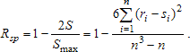 Пусть некоторые объекты обладают парой признаков каждый и гипотеза об их взаимосвязи не отвергается. Если признаки оказались взаимосвязаны, исследователя интересует сила их связи. Для описания такой связи было предложено много различных коэффициентов, называемых мерами связи. В порядковых (ординальных) шкалах реальным содержанием измерений является тот порядок, в котором выстраиваются объекты (по степени выраженности измеряемого признака) и вместо значений чисел рассматривают их ранги. Здесь проверка нулевой гипотезы ведётся методом Спирмена. Пусть признаков два и каждый из n объектов характеризуется парой чисел (xi, yj) - своими значениями признаков А и В. От чисел переходим к их рангам (ri, sj). Cчитаем, что среди чисел xi и yj нет повторяющихся. Если признаки взаимосвязаны, то порядок, в котором следуют числа xi влияет на порядок, в котором следуют числа yj. Чем более тесно связаны эти признаки, тем в большей степени последовательность ri предопределяет последовательность sj. Если же признаки такой связи не проявляют, то порядок среди игреков случаен по отношению к порядку среди иксов. В этом случае все n! перестановок чисел 1, 2,..., n, которые могут выступать как ранги, оказываются равновероятными при любом порядке чисел ri. По предложению Спирмена, близость двух рядов рангов ri и sj можно характеризовать статистикой: