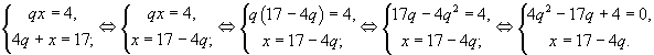 Первое уравнение итоговой системы является квадратным. Его решаем через дискриминант: