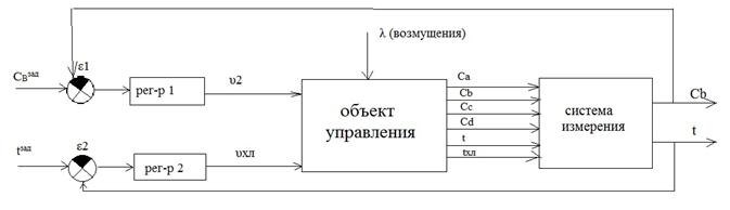 В программе необходимо к системе уравнений объекта добавить два уравнения для регуляторов. Выражения для