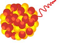 Показанные в таблицах дозы и эффекты применимы к среднему индивидууму в популяции здоровых людей, а не к какому-либо конкретному индивидууму, реакция которого может отличаться от средней. Например, у ~1% населения может проявиться очень высокая радиочувствительность вследствие врожденных генетических расстройств. Такой же процента населения обладает пониженной чувствительностью к облучению. Воздействие излучение подразделяется на внешнее и внутреннее. Внешнее – а результате облучения внешними источниками излучения. Внутреннее – за счет поглощения радионуклидов организмом. Повышенная опасность радионуклидов, попавших внутрь организма, обусловлена несколькими причинами. Одна из них – способность некоторых нуклидов избирательно накапливаться в отдельных органах тела, называемых критическими (например, до 30% йода накапливается в щитовидной железе, которая составляет 0,003% массы тела), и, таким образом, отдавать свою энергию относительно небольшому объему ткани. Другая причина – значительная продолжительность облучения до момента выведения нуклида из органа или уменьшения активности вследствие радиоактивного распада нуклида. Радиоактивные вещества проникают в организм в основном через: органы дыхания, желудочно-кишечный тракт (ЖКТ) и через кожу или ее повреждения. Этими путями нуклиды вначале попадают в кровь, а затем током крови разносятся по всему телу или преимущественно в критические органы. В некоторых случаях критическим органом становятся ЖКТ, а также легкие. Благодаря работе выделительной системы радионуклиды, попавшие в организм, покидают его с течением времени. Однако биологические периоды полувыведения нуклидов из критических органов и тканей различаются значительно – от суток (3H(12,4лет), 14C(5730лет), 24Na (15ч)) до (практически) бесконечности (полное усвоение: 90Sr (28,6 лет), 239Pu (2,41∙104лет)). Существуют также свои коэффициенты усвоения различных радионуклидов органами и тканями. По характеру распределения нуклиды в организме отчетливо разделяются на три группы: концентрирующиеся в костях (90Sr, 226Ra, 239Pu, 241Am(432года) и др.), в печени (144Ce, 239Pu, 241Am и др.), вот всем теле (3H, 60Co, 106Ru, 137Cs и др.). α-излучение На рисунке 1 нестабильное ядро находится в процессе излучения своей избыточной энергии за счет испускания частицы, которая является ядром гелия и состоит из двух протонов и двух нейтронов. Эта частица называется α-частица. α-частицы - положительно заряженные ядра гелия, обладающие высокой энергией.