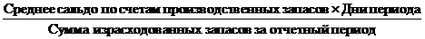 Анализ состояния производственных запасов сырья и материалов начинают с изучения их динамики и проверки соответствия фактических остатков их плановой потребности. Размер производственных запасов в стоимостном выражении может измениться как за счет количественного, так и стоимостного (инфляционного) фактора. ΔЗк = Σ(ΔКi x Цi0) ΔЗц = Σ(Кi1 x ΔЦi) Важно также проанализировать интенсивность использования капитала, вложенного в запасы сырья и материалов. Период оборачиваемости запасов (сырья и материалов) равен времени хранения их на складе от момента поступления до передачи в производство. Чем меньше этот период, тем меньше при прочих равных условиях производственно-коммерческий цикл. Период оборачиваемости запасов определяется следующим образом: ПЗ = Для оперативного управления запасами делается более детальный анализ их оборачиваемости по каждому виду. Для этого их средние остатки нужно разделить на однодневный расход соответствующего материала. На многих предприятиях большой удельный вес в оборотных активах занимает готовая продукция. Увеличение остатков ГП на складах предприятия приводит к длительному замораживанию оборотного капитала, отсутствию денежной наличности, потребности в кредитах и т.д. Продолжительность нахождения капитала в готовой продукции (ПГ.П.) равна времени хранения ГП на складах с момента поступления из производства до отгрузки покупателям. ПГ.П. = Значительный удельный вес в оборотных активах на многих предприятиях занимает незавершенное производство. Продолжительность производственного цикла (ПП.Ц.) равна времени, в течение которого производится продукция: ПП.Ц. = Необходимо проанализировать также продолжительность процесса производства по каждому виду продукции и установить факторы ее изменения. Продолжительность производственного цикла зависит от интенсивности, технологии, организации производства, материально-технического снабжения и других факторов. Его сокращение свидетельствует о повышении деловой активности предприятия.