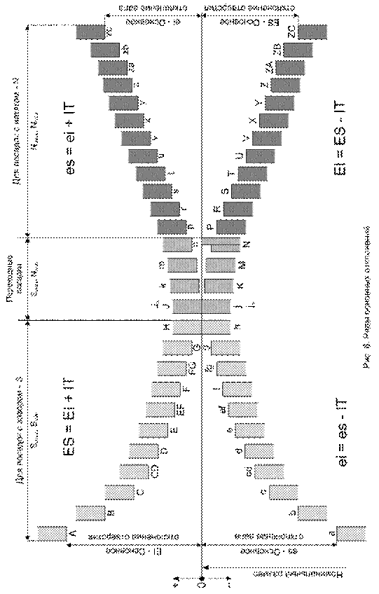 В ЕСДП расположение поля допуска относительно нулевой линии характеризуется основным отклонением. Основное отклонение – одно из двух предельных отклонений (верхнее или нижнее), ближайшее к нулевой линии. Основные отклонения обозначаются одной или двумя буквами латинского алфавита, прописными для отверстий (А,В,С, СD.D … ZC) и строчными для валов (а,в,с,сd … zc) (рис. 6). Установлено 27 основных отклонений валов и 27 основных отклонений отверстий. В ЕСДП введены понятия основного вала и основного отверстия. Основный вал – вал, верхнее отклонение которого равно нулю, т.е. es = 0. Основное отверстие – отверстие, нижнее отклонение которого равно нулю, т.е. EI = 0. Основной вал обозначается буквой h, а основное отверстие – Н. Буквами Js, js, обозначается симметричное расположение поля допуска размера относительно нулевой линии. В этом случае числовые значения верхнего и нижнего отклонений одинаковы и определяются в зависимости от допуска (квалитета). При одном и том же буквенном обозначении числовое значение основного отклонения изменяется в зависимости от номинального размера.
