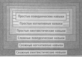 Следует принимать во внимание, что способности сами по себе обладают различной природой и уровнями сложности. В попытке смоделировать свойственные выдающимся людям цели, обоснования, действия и реакции на затруднения (элементы ТОТЕ) важно учитывать, на какие уровни они могут быть направлены. К примеру, «цель» можно сформулировать в терминах специфического поведения, например «произвести двадцать единиц продукции к пятнице», или в терминах способностей: «совершенствовать наши способности в сфере решения проблем». На уровне убеждений и ценностей цель может быть сформулирована как «сделать акцент на качестве продукции». На уровне идентичности — «достичь статуса ведущего предприятия в нашей отрасли». Цель, определяемая в терминах «видения», может звучать так: «изменить способ общения людей друг с другом». Очевидно, что различные уровни целей требуют обоснований и действий на различных уровнях. Разными будут и уровни проблем, которые возникнут на пути к их осуществлению. Фактически обретение мудрости и навыков для управления взаимоотношениями между различными уровнями процессов, вероятно, является одной из сложнейших задач любой эффективной деятельности. Некоторые навыки и способности, на самом деле, состоят из других навыков и способностей. Способность «написать книгу» складывается из способностей, связанных со словарным запасом, грамматикой и орфографией языка, на котором человек собирается писать, равно как и со знаниями предмета, о котором будет книга. Эти способности нередко называют «встроенными ТОТЕ», «субпетлями» или «субнавыками», поскольку они представляют собой дробные части, из которых строятся более утонченные или сложные навыки. Способность к лидерству, например, состоит из множества отдельных навыков, связанных с эффективным общением, установлением раппорта, решением проблем, системным мышлением и т. д. Таким образом, процесс моделирования сам по себе может быть направлен на различные уровни сложности тех или иных навыков и способностей (рис. 9). Простые поведенческие навыки включают в себя специфические, конкретные, доступные непосредственному наблюдению действия, выполнение которых занимает короткий временной период (несколько секунд или минут). Среди примеров простых поведенческих навыков — выполнение танцевального движения, достижение определенного состояния, бросок мяча в корзину, наведение ружья на цель и т. д. Простые когнитивные навыки включают в себя специфические, легко идентифицируемые и поддающиеся проверке психические процессы, выполнение которых занимает короткий временной период (несколько секунд или минут-). Среди примеров простых когнитивных навыков — запоминание имен, умение читать и писать, приобретение простого словарного запаса, создание мысленного образа и т. д. Подобные навыки мышления приносят легко поддающиеся наблюдению и измерению поведенческие результаты, а также непосредственную обратную связь. Простые лингвистические навыки включают в себя распознавание и использование определенных ключевых слов, фраз и вопросов, например умение задавать специфические вопросы, распознавание и реакция на ключевые слова, пересмотр ключевых фраз или отказ от них и т. д. Применение этих навыков также доступно для непосредственного наблюдения и измерения. Сложные поведенч