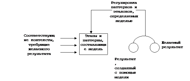 Многие аспекты и фазы моделирования в НЛП (включая «обнаружение свойства», «распознавание паттерна» и различные элементы стратегий микро-, макро- и прикладного моделирования) суммированы в разработанной автором «стратегии продвинутого моделирования». 1. Определите желаемый навык или способность, которые вы хотели бы смоделировать, а также человека (людей), обладающего (их) данным навыком (способностью). 2. Создайте ситуацию или контекст, в котором вы можете получить, как минимум, три различных специфических примера того, как моделируемые люди осуществляют желаемый навык. А. Выделите критические факторы для каждого из примеров с помощью следующих фильтров восприятия: — ключи доступа; — языковые паттерны — метамодель, предикаты и т. д.; — физиология; — репрезентативные системы, стратегии и субмодальности; — паттерны метапрограммы; — убеждения и ценности; — логические уровни. Б. Определите, какие факторы совпадают во всех трех случаях. 3. Найдите, как минимум, один противоположный пример, т. е. другого человека или людей (включая вас лично), неспособного (неспособных) к адекватному осуществлению данного навыка или ситуации, в которых сама модель не смогла бы адекватно применить данный навык. Определите критические факторы противоположного примера (примеров), применяя те же фильтры, что и в пункте 2А. 4. Сравните критические факторы в трех удачных примерах с критическими факторами противоположных примеров. Отметьте наиболее значимые различия. 5. Изменяйте значимые критические факторы противоположных примеров е соответствии со значимыми критическими факторами удачных примеров до тех пор, пока не сможете добиться желаемого поведения или результатов от людей или в ситуациях, составляющих противоположный пример (примеры). Если изменение факторов не приводит к желаемому поведению или результату применительно к людям или ситуациям, составляющим противоположный пример, найдите другие, более уместные или действенные примеры для моделирования и продолжайте повторять действия с пункта 4 до тех пор, пока желаемое поведение или результаты не будут достигнуты. 6. Теперь начинайте по очереди варьировать критические факторы, которые обеспечили достижение желаемого поведения или результатов. А. Найдите «предел», до которого вы можете изменить фактор, не меняя результата. Б. «Принцип элегантности»: определите минимальное количество факторов, необходимых для достижения желаемого поведения или результатов. Прикладное моделирование и процесс «обратного распространения» Последний, «контрольный» этап в стратегиях как прикладного, так и продвинутого моделирования напоминает то, что в технологии нервных сетей называется «обратным распространением». Нервные сети представляют собой компьютерные структуры, построенные по принципу мозговой деятельности. Они используются для распознавания сложных паттернов и, как правило, включают в себя ряд взаимосвязанных элементов, служащих для создания своего рода «модели» того или иного паттерна или явления. Модель представляет собой функцию «весов», или сил, связей между элементами сети. Эта внутренняя «модель» определяет результативность сети. Ценность нервных сетей заключается в том, что они способны научиться распознавать паттерны «эвристически», как функцию повторяющегося опыта. Модель 