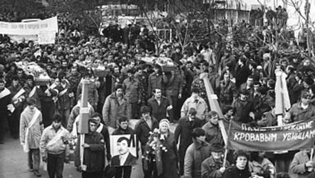 В.Финагин и Г.Андреева на похоронах первых жертв ОПОНа Молдовы 06.11.90 г. в Дубоссарах