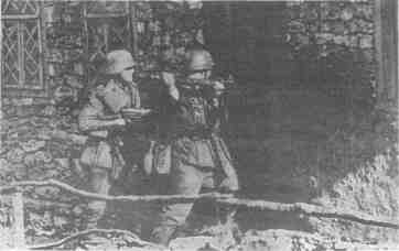 Немецкие войска вступают в захваченную деревню. С ужасом смотрят на них крестьянки....