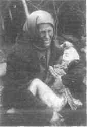Взятый в плен офицер люфтваффе объяснил бомбардировки жилых кварталов советских городов словами: «Нам нужна эта земля, но не населяющие ее люди». На фотографии - Татьяна Онищенко со смертельно раненной осколками немецкой бомбы дочкой