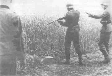 Патрульный полевой жандармерии расстреливает подозреваемого сятков полицейских «службы порядка», вооруженных немцами, да деревенский староста — вот и вся оккупационная власть. Куда как ненадежная: старосты прячут предназначенное для вывоза в Рейх продовольствие, полицейские то и дело перебегают к партизанам. Когда партизаны Ковпака приблизились к одной белорусской деревне, то, к своему удивлению, не обнаружили в ней жителей. Дома носили следы поспешного бегства; когда часа через полтора крестьяне вернулись, выяснилась весьма характерная вещь. Партизан приняли за немцев и, только удостоверившись, что это свои, советские люди, вернулись. «Появился и староста и тотчас начал принимать меры к тому, чтобы накормить нас, предложил даже ночевать у него в избе, — вспоминал один из партизан. — Староста, назначенный немцами, бежал от них и вернулся, как только узнал, что в селе партизаны!»1. Такова была лояльность к оккупантам; лишь войска вермахта, время от времени перебрасываемые на фронт через эти места, напоминали: отныне это германская земля. Date: 2015-06-11; view: 559; Нарушение авторских прав |
