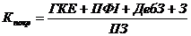 де ПФІ — поточні фінансові інвестиції на початок (кінець) періоду, тис. грн. (ф. 1 ряд. 220 Балансу); ДебЗ — дебіторська заборгованість на початок (кінець) періоду, тис. грн. (ф. 1 ряд. 150 + 160 + 170 + + 180+ 190 + 200 + 210). Нормальним вважається стан, коли Ккр.лікв > 1. 3. Коефіцієнт покриття, або коефіцієнт поточної ліквідності, характеризує здатність підприємства погасити поточні зобов'язання протягом періоду, що дорівнює тривалості обороту його оборотних активів. У цьому разі розглядається не тільки забезпечення своєчасних розрахунків з дебіторами та реалізації готової продукції, а й продажу в результаті потреби інших оборотних засобів (сировини, матеріалів тощо). Розраховують цей коефіцієнт за формулою