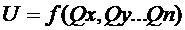 U – корисність; Qx, Qy, Qn – обсяги відповідних спожитих товарів. Для побудови моделі поведінки споживача введемо ще одне припущення: нехай споживач формує свій набір лише за рахунок двох товарів (Х та У). Тоді у спрощеному вигляді функція корисності може бути представлена так: