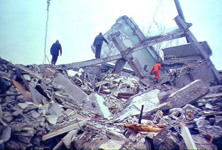 ...Машин на отвоз не хватает, скреперы перебрасывают обломки из кучи в кучу. Краны работают неритмично, не хватает крановщиков и квалифицированных стропальщиков. Самое главное - дезинфекция. В условиях недостатка воды и медикаментов над городом реально встает угроза эпидемии дизентерии. Ходят слухи о скором введении карантина месяца на полтора. Этого только не хватало! Небо в облаках, время от времени сыплет снежком, но тепло. К счастью наши дома находятся в самом центре города в непосредственной близости от начальства. Так что к обеду подвозят цистерну с водой, дезинфицирующие порошки и аэрозоли. Встреченные нами спелеологи говорят, что мы тут, как короли, ближе к окраинам вообще ничего нет.