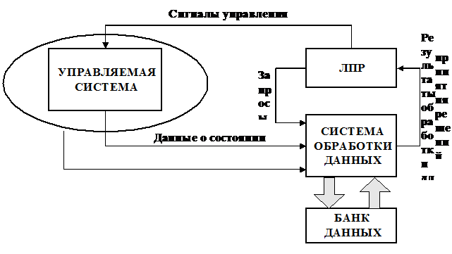 Система, предназначенная для обработки информации (т.е. для ее переработки с целью получения новых данных), может быть эффективной только при условии, что она надлежащим образом снабжается информацией и в состоянии правильно распределять результаты своей работы. Поэтому эффективность системы обработки зависит от степени ее интеграции с системой информации, от организации в ней входных и выходных потоков информации. Система обработки нуждается в технических средствах сбора и передачи данных. Объединение системы обработки и системы сбора и передачи данных называется автоматизированной информационной системой. Схематично ее можно представить в виде обычной кибернетической системы с обратной связью (см. рис.1).