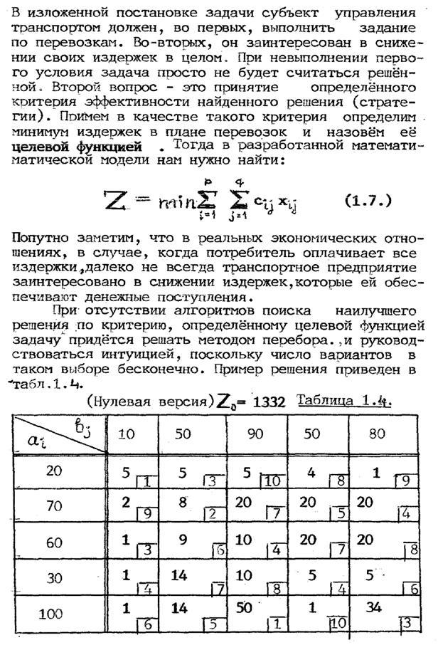 Анализируя решения по трём разным версиям (нулевой, первой и второй) сделаем некоторые обобщения, полезные для последующего понимания методологии исследования операций. 1.Исследование операций представляет собой гтроцесс, который начинается с анализа практической ситуации, выявления проблем и выяснения путей решения проблемы, одновремеянно формируется понятие цели у субъекта, который должен принять решение. (В данном случае по плану перевозок). Эта часть анализа (начало) проходит на эвристическом уровне, и во многом зависит от опыта исследователя и его понимания интересов заказчика, который, в конечном счёте, и является «лицом, принимающим решение” (ЛПР). Начальный этап сопровождается постепеным процессом снижения уровня неопределённости по объектам, целям и задачам. Оптимальной можно назвать цель которая достижима с минимальным экономическим риском. 2. Для выхода на получение численных оценок и функциональных зависимостей, имеющих практическое значение, в исследованиях необходимо произвести выбор исходной математической формализации, которая бы дала возможность решить задачу приближённо. Возможно, что от начального решения можно будет перейти к другому, более эффективному решению. Понятие модели не означает, что прямо избирается конкретный математическии алгоритм решения, хотя и это бывает в случае типовой задачи, но чаще мы не находим, таких алгоритмов «с прямой подстановкой исходных данных». В выполненных по трём различным версиям решениях мы видим, что даже само введение тех или иных принципов снижает неопределённость задачи. З. Все три решения, построенные в соответствии с начальными версиями, являются допустимыми, с точки зрения математики, поскольку не нарушены математические соотношения. Но с точки зрения научного подхода к реальным проблемам оптимизации транспортных процессов они весьма несовершенны. Кто заинтересован в снижении затрат на перевозки, и за счёт кого будет достигнута оптимизация, вот в чём вопрос. При проведении операционных исследований часто анализируется такой фактор, как транспортные тарифы. Разумеется, что они составлены так, чтобы перевозки приносили прибыль. Ведь тарифы готовят специалисты транспорта. Но оправданы ли затраты - это вопрос. При рассмотрении различных задач по взаимодействию, часто под оптимальным решением достижение некоторых компромиссных условий по взаимодействию партнёров в бизнесе, включая и транспортную сферу. Достижение разумных и взаимовыгодных условий одна из самых трудных задач субъектов экономики, работающих в условиях рынка.
