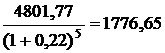 4. Розрахунок поточної вартості грошових потоків. Поточна вартість грошових потоків розраховується за допомогою дисконтування їх величини для кожного прогнозного року за формулою 5.4. Результати розрахунків наведено у табл. 6.5. 5. Розрахунок поточної вартості реверсії. Вартість реверсії за методом прямої капіталізації 5-го прогнозного року становить: