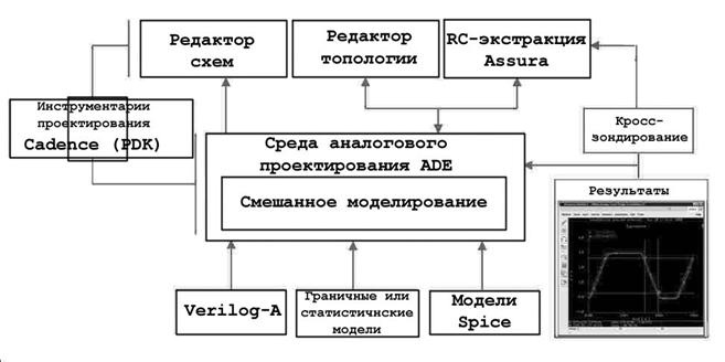 С использованием современной FastSPICE технологии Virtuoso UltraSim, система моделирования позволяет выполнять высокопроизводительное, аналоговое или смешанное моделирование всей системы. Поддержка многих языков описания объектов обеспечивает независимость языка и уровня абстракции в методологии проектирования. Обобщенная реализация полупроводниковых приборов в системах моделирования, входящих в платформу Virtuoso, гарантирует высокую точность результатов. С учетом RC-редукции, с помощью UltraSim и Virtuoso стало возможным решение ранее недоступных задач полной и точной верификации проекта после фазы разработки топологии на нанометровых технологиях. Платформа заказного проектирования Vittuoso легко интегрируется в единый маршрут проектирования с платформой функциональной верификации Incisive. Фирма Cadence обеспечила интеграцию новой системы на уровне plug-and-play и предоставила разработчикам возможность использования современных средств аналогового моделирования и заказного проектирования в рамках единой методологии разработки СБИС.