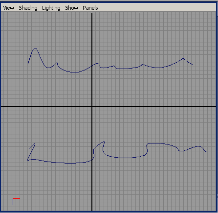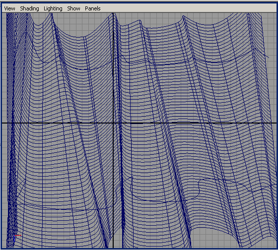Имитировать ткань, ниспадающую складками, при помощи лофтинга совсем несложно — для этого достаточно подготовить два криволинейных контура с большим числом узлов и сгенерировать на их основе лофт-объект. Создайте кривые, применив команду Create => EP Curve Tool (Создать=>Кривая по точкам редактирования), — рис. 22, выделите их, щелкните на квадратике справа от команды Surfaces => Loft (Поверхности=>Лофтинг), установите для параметра Degree вариант Cubic (поскольку складки должны быть гладкими) и создайте лофт-объект (рис. 23). Назначьте поверхности подходящий материал, учитывающий структуру ткани, и проведите рендеринг (рис. 24).