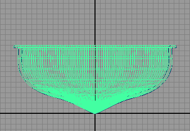 В окне Outliner (Структура) выделите одну из кривых и сделайте ее копию (рис. 39), переместите копию на некоторое расстояние по оси Z и выделите обе кривые (основу для копии и копию) — рис. 40. Создайте лофт-объект — это будет одна из боковых поверхностей корпуса (рис. 41). Аналогичным образом смоделируйте вторую боковую поверхность, а затем отрегулируйте длину лодки, выделив в окне Outliner копии исходных кривых и переместив их по оси Z нужным образом. В итоге корпус лодки будет выглядеть примерно так, как показано на рис. 42. Теперь следует сформировать носовую часть корпуса. Выделите кривую, указанную на рис. 43, сделайте ее копию и разверните ее на 90° по оси Y (рис. 44). Выделите отмеченные на рис. 45 кривые (они станут основой для лофтинга половины носовой части лодки) и примените к ним команду Surfaces => Loft (Поверхности=>Лофтинг). Точно таким же способом создайте вторую половину носовой части корпуса, а затем выделите кривую в основании носовой части, переключитесь в режим редактирования вершин (кнопка F9) и, наблюдая за изменением носа лодки, отрегулируйте положение отдельных вершин так, чтобы добиться большей правдоподобности внешнего вида носовой поверхности (рис. 46). Выделите все фрагменты лодки и установите для них высокий уровень сглаживания (команда Display => NURBS Smoothness => Fine). Назначьте объектам сцены подходящие материалы и проведите рендеринг, возможный результат которого представлен на рис. 47.