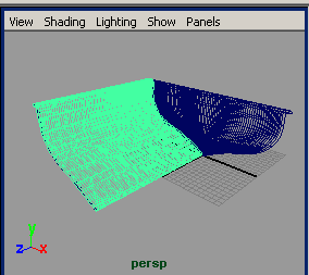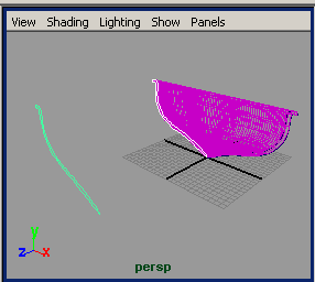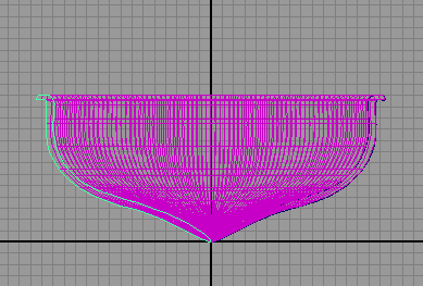 Рис. 34. Кленовый лист Лодка Учитывая, что лофтинг может применяться для создания поверхностей по любым криволинейным контурам, попробуем воспользоваться им для построения простейшей модели лодки. Инструментом EP Curve Tool создайте в проекции Left примерно такую же кривую, какая представлена на рис. 35. Сделайте ее дубликат с одновременным поворотом последнего на 180° по оси Y, щелкнув на квадратике справа от команды Edit => Duplicate (Редактировать=>Дубликат) и определив параметры дублирования в соответствии с рис. 36. Отрегулируйте положение кривых друг относительно друга (рис. 37). Выделите кривые и примените к ним операцию лофтинга (команда Surfaces => Loft — Поверхности=>Лофтинг), в результате чего будет создана задняя поверхность корпуса лодки (рис. 38).
