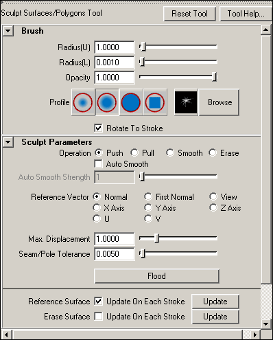 Режим работы кисти может изменяться не только непосредственно в окне Sculpt Surface, но и через меню быстрого вызова, открываемое при щелчке по обрабатываемой поверхности при нажатой клавише U. При использовании технологии скульптурной деформации следует обратить внимание на следующие моменты: