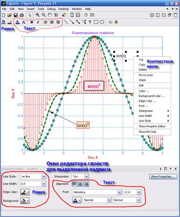 Надписи на график можно нанести с помощью панели инструментов Plot Edit Toolbar (рис. 16). Место надписи фиксируется щелчком мыши.