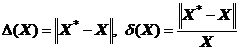 Нормы векторов Пусть имеется n - мерное пространство вещественных чисел Rn. Если для любого вектора · · · то На практике используют следующие нормы: · max-норма или m-норма · l -норма · Евклидова норма Далее будем всюду считать, что в пространстве Rn введена некоторая норма Определение. Пусть X * – точное значение вектора, X ‑ приближенное значение. Определим абсолютную и относительную погрешность вектора X*: