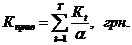 де Кг - капітальні витрати у 1-ому році їх освоєння, грн.; Т - загальний термін реалізації інвестиційного проекту, років. Якщо капіталовкладення здійснюють після розрахункового року, вони приводяться до нього шляхом ділення на а: