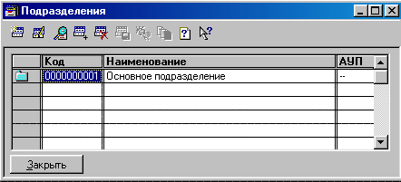 · Установите курсор на графе «Наименование» первой (и единственной пока) строки списка, в которой указано подразделение «Основное подразделение». Нажмите Enter, исправьте содержимое на «Администрация» и проставьте флаг, затем завершите редактирование нажатием ОК);