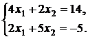 Рис.2.2 Структурная схема модели системы дифференциальных уравнений Схема построена с использованием классических методов аналоговой вычислительной техники. Входными сигналами схемы являются значения 14 и – 5, при этом на входы интеграторов Integrator и Integrator1 подаются сформированные правые части первого и второго уравнения, а на выходах получаются значения искомых переменных Переходный процесс получения установившегося решения изображен на экране виртуального осциллографа (рис. 2.3).