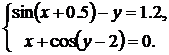 Для решения системы будем использовать блок Algebraic Constraint, который выполняет поиск корней алгебраических уравнений. Систему представим в виде