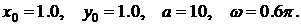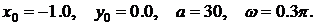 Реализовать модель траектории движения материальной точки в виде зависимости координат от времени и на фазовой плоскости.