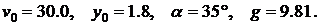 Вариант №5. Вариант №10. Вариант №15. Вариант №20. Вариант №25. Варианты исходных данных применить для решения задачи. Траектория полета снаряда, вылетевшего с начальной скоростью